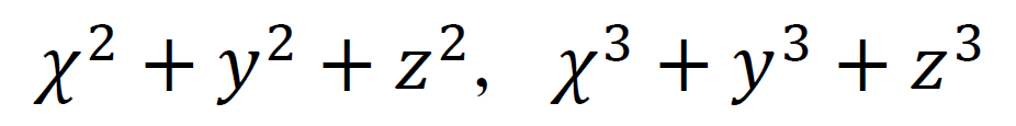 文字が3つの対称式の場合は、基本対称式が3つある。