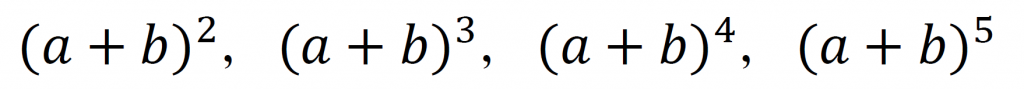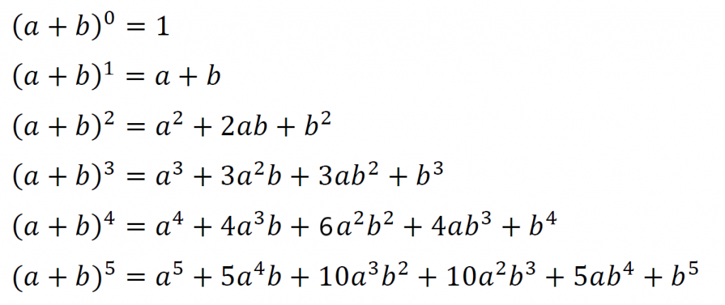 それぞれの展開の公式で係数が何かを考えるときにパスカルの三角形を使う。