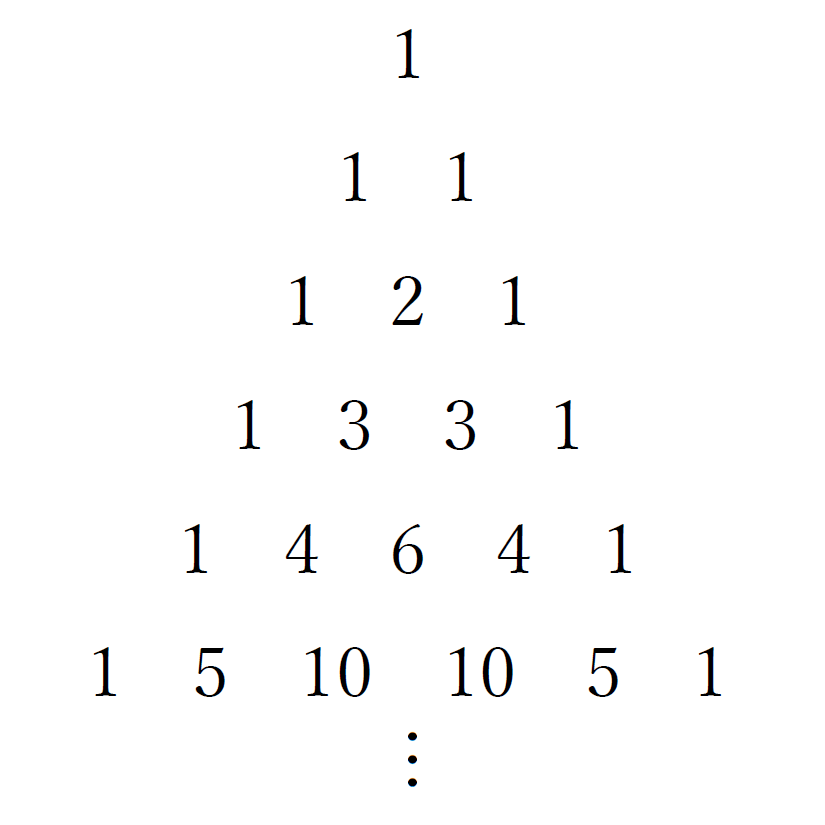 とりあえずこれが「パスカルの三角形」って呼ばれている。