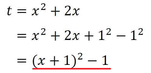 \(t\)の変域を確定させるために平方式に平方完成する。