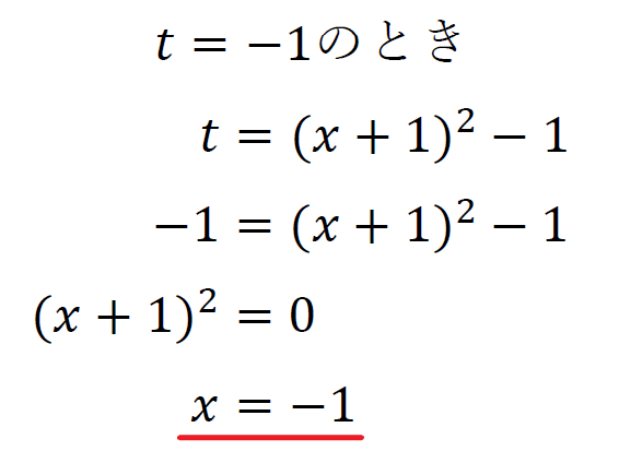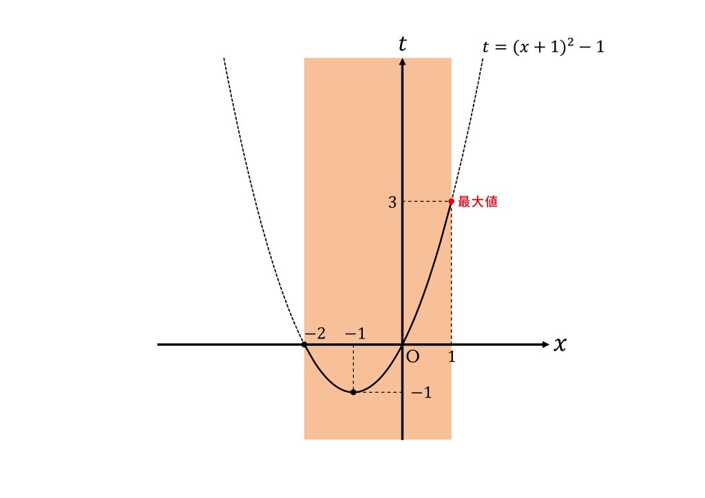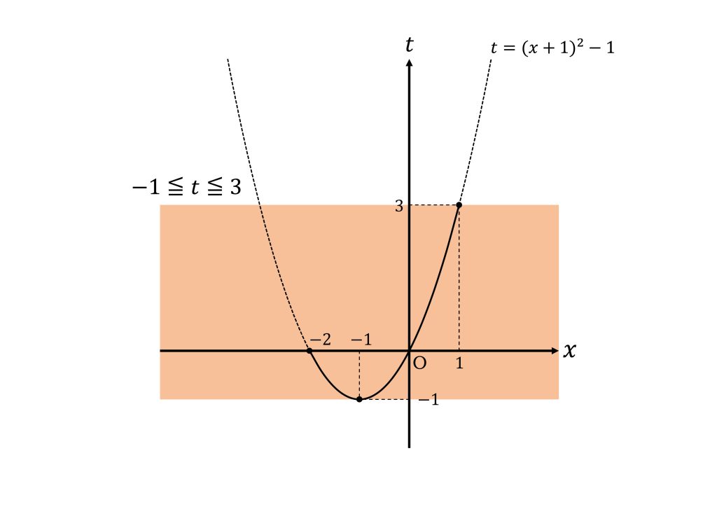 つまり\(t\)の変域は\(-1≦t≦3\)ということが分かる。