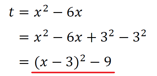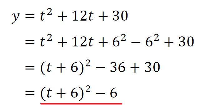 \(y=t^2+12t+30\)を平方式に平方完成する。