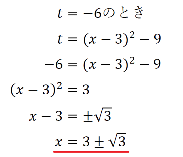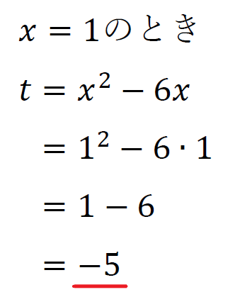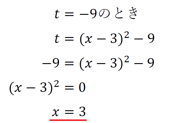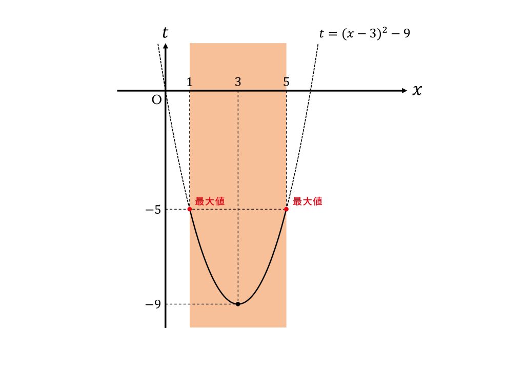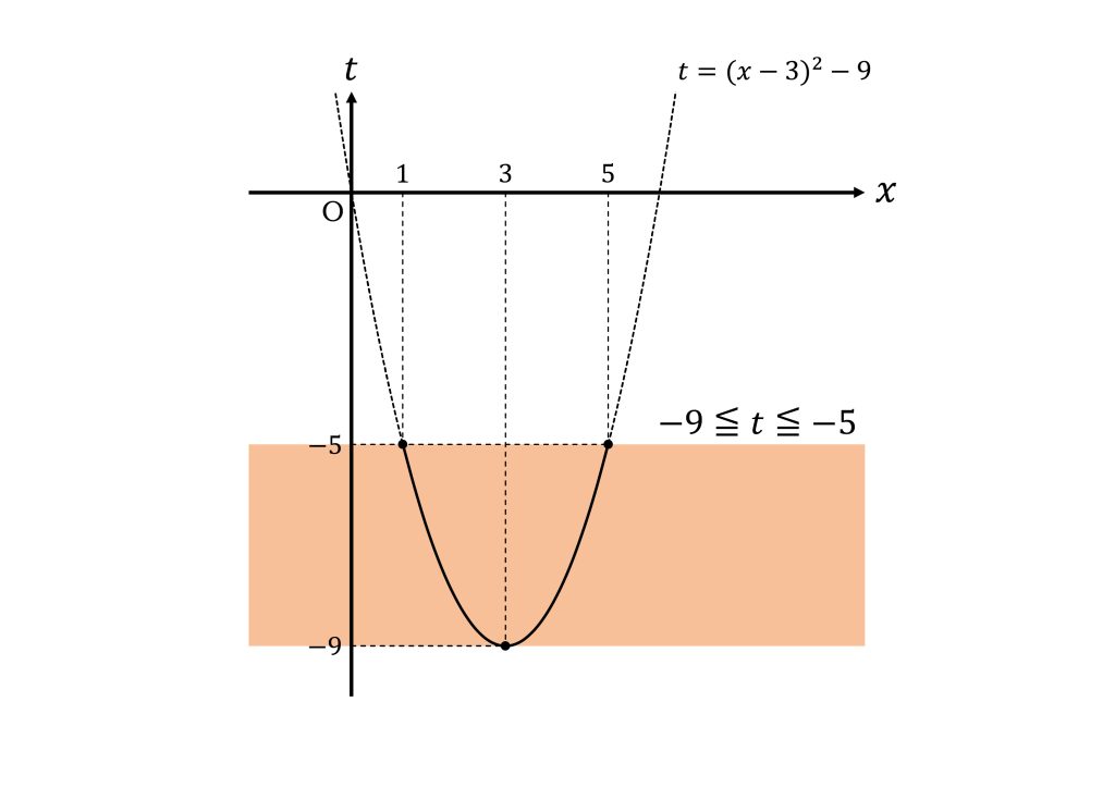 つまり\(t\)の変域は\(-9≦t≦-5\)ということが分かる。