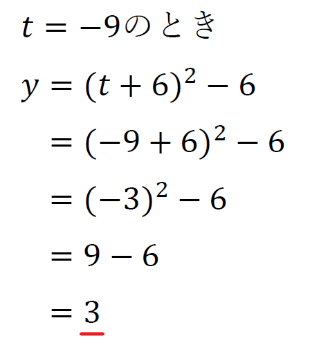 軸\(t=-6\)、頂点\((-6,-6)\)ということが分かった。