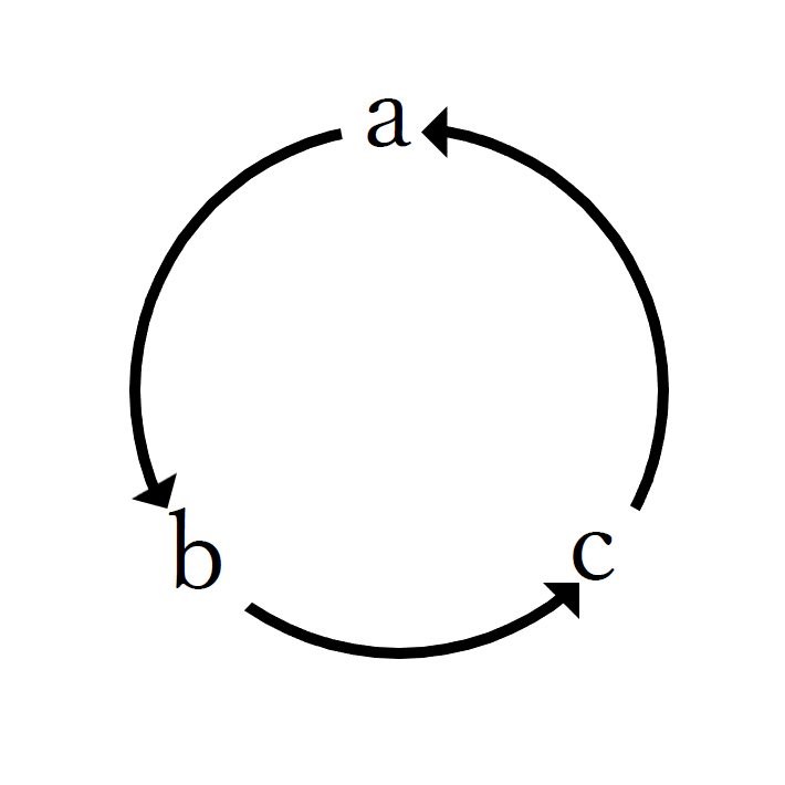 a→b→c→a→…という、
