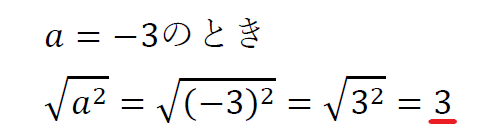 \((a\)の平方根\()^2=(±\sqrt{a})^2=a\)