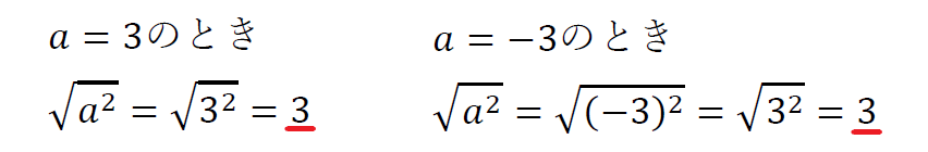 \(a^2\)の平方根\(=±\sqrt{a^2}\)