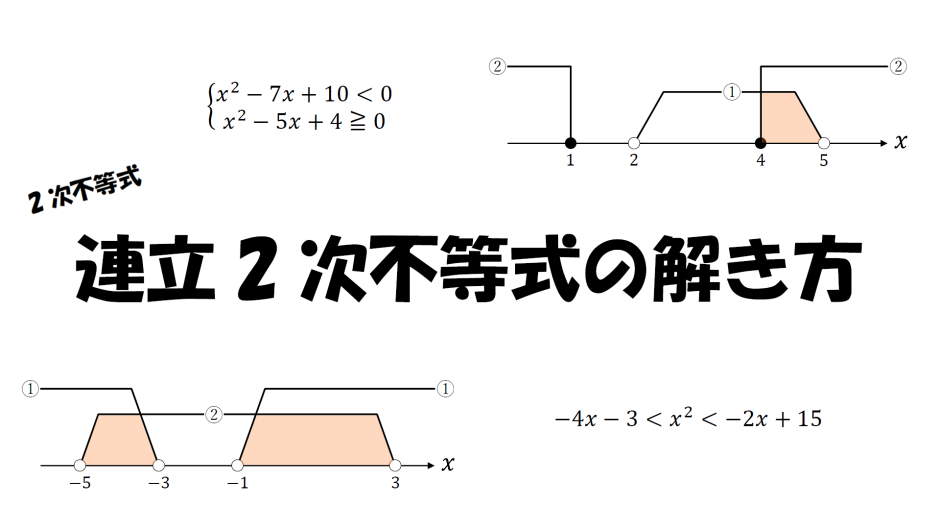 連立2次不等式は、2つ以上の2次不等式を同時に満たす範囲を求める問題。